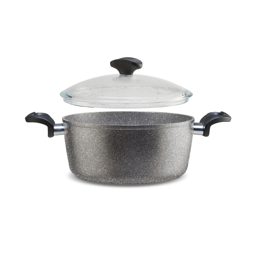 UNION LINE 雙握耳天然礦石煲 24cm連玻璃蓋 所有爐具適用
